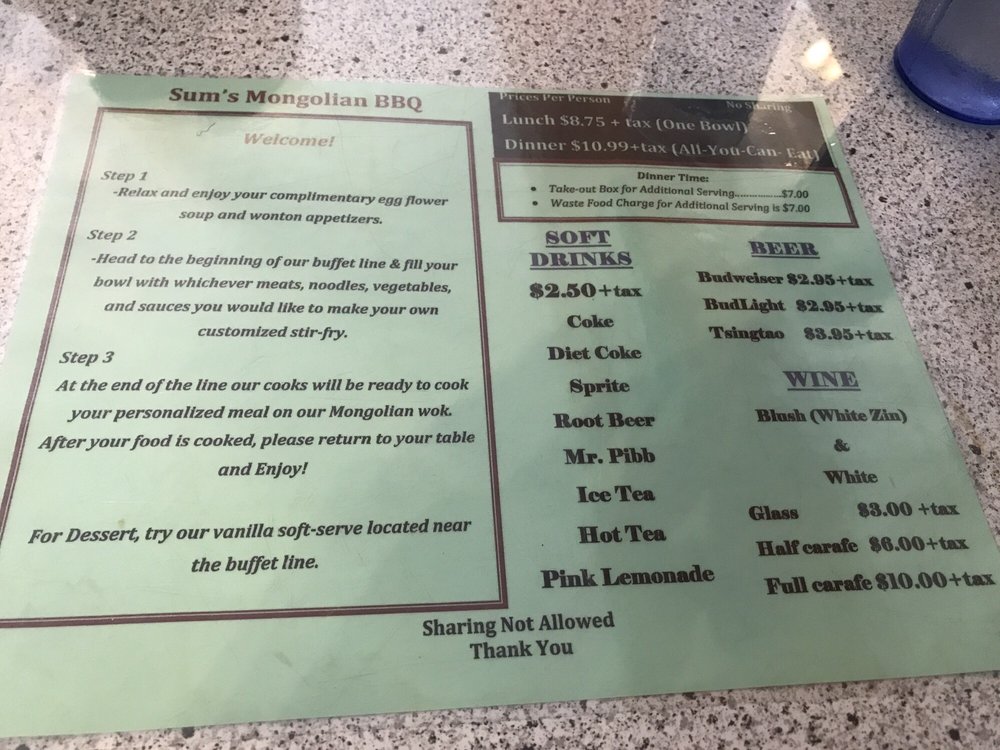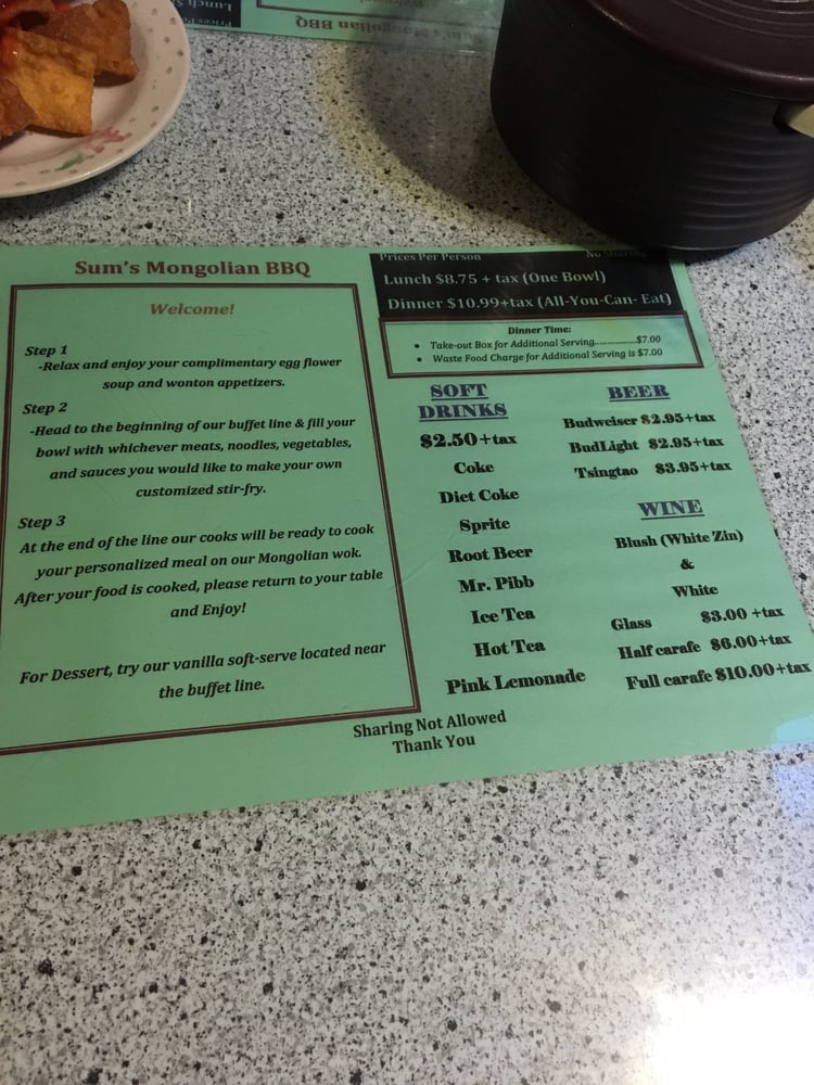 Sum’s Mongolian Bar-B-Que Restaurant Menu (Update 2025)